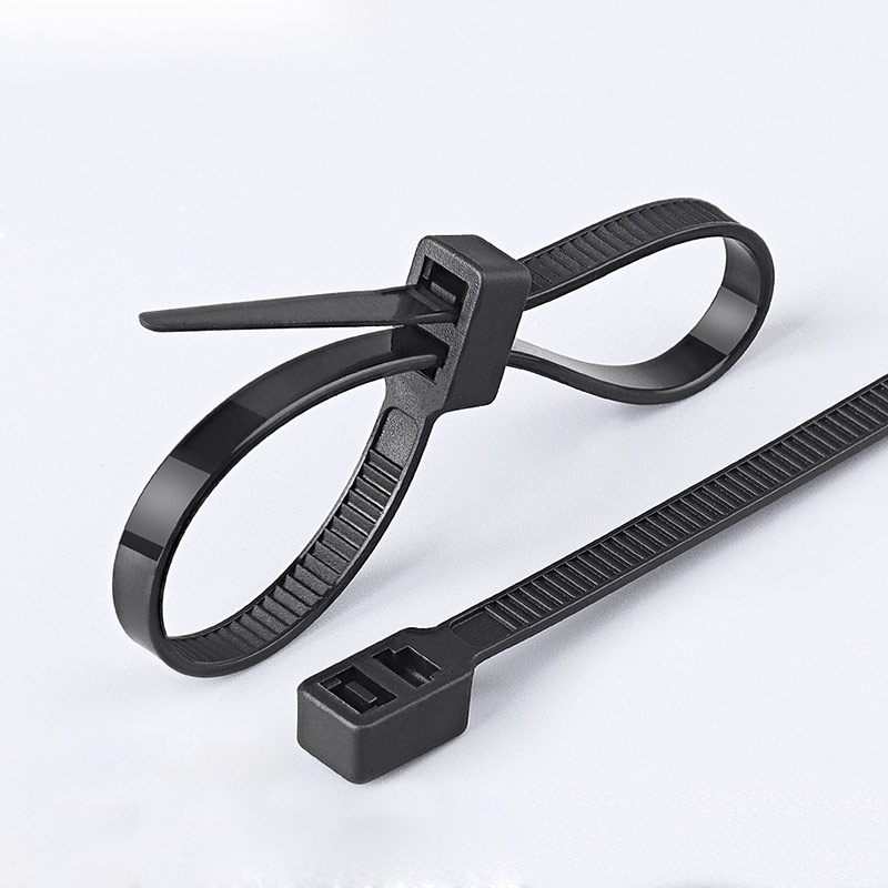 Professional double head nylon 66 cable ties. UL 94V-2 certified material. High-quality plastic ties for multi-bundle cable management and industrial organization.