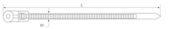 | Item No. | Length mm (inch) | Width (mm) | Bundle Diameter (mm) | Tensile Strength (LBS / KGS) |